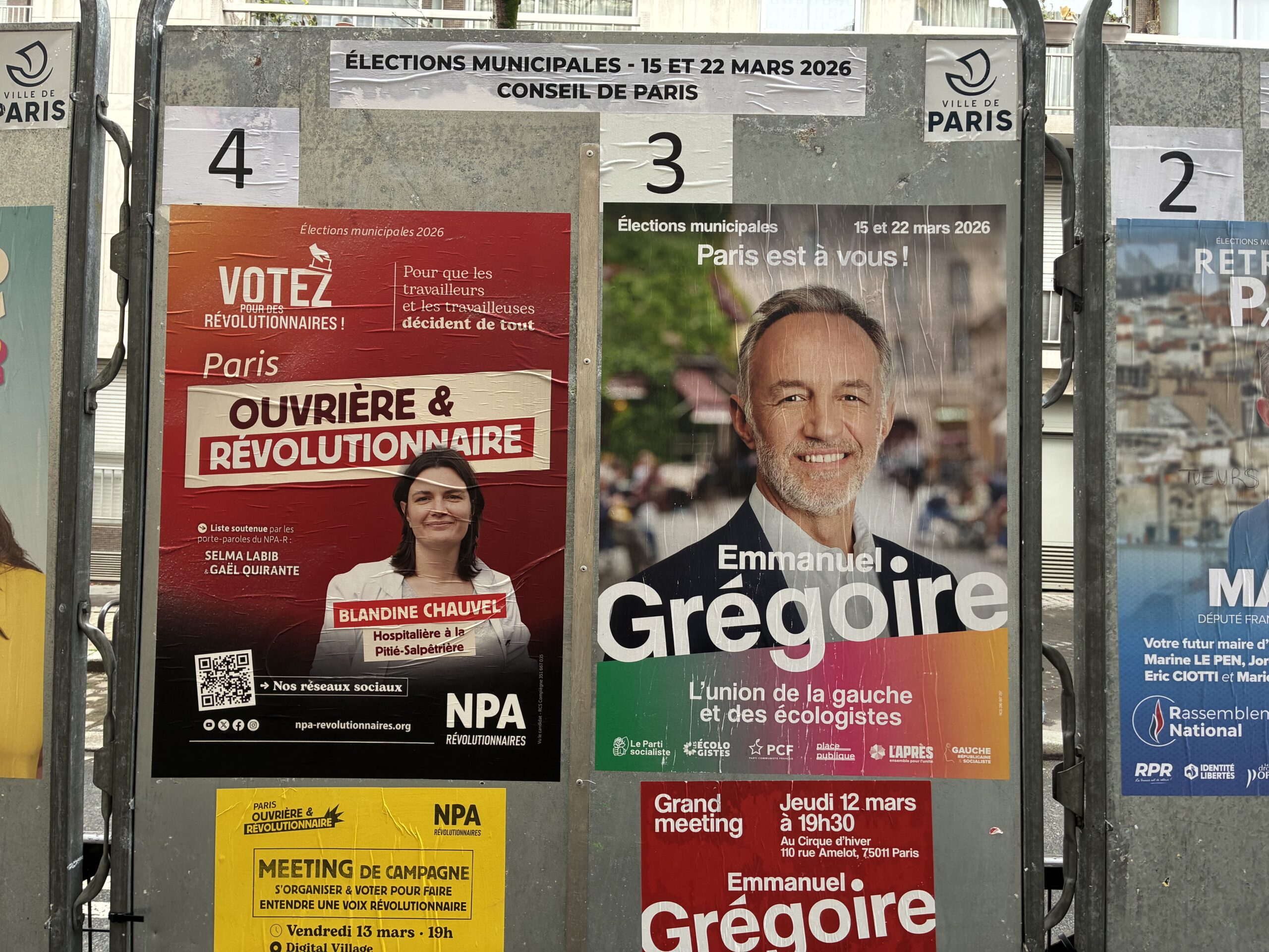 Si le RN progresse fortement dans plusieurs villes comme Perpignan, Nice, Toulon, Marseille, Nîmes ou Béziers, il reste en revanche nettement plus faible dans les grandes métropoles comme Paris, où Thierry Mariani (RN) ne recueille que 3 % des intentions de vote et où Emmanuel Grégoire (PS) arrive en tête avec environ 30 % dans les derniers sondages.